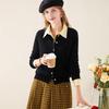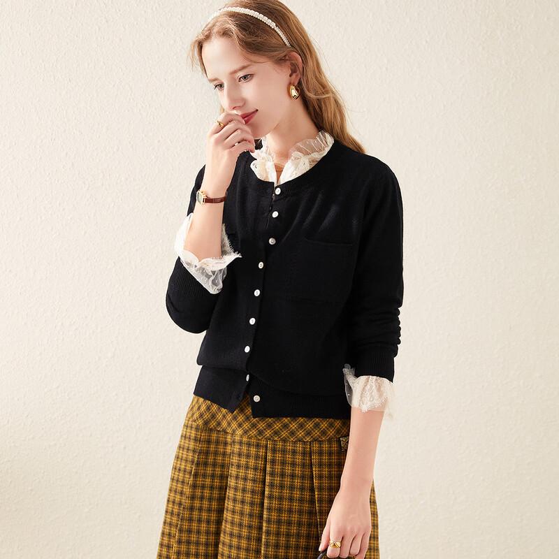 TUHUANG Women's Pure Wool Round Neck Cardigan Sweater