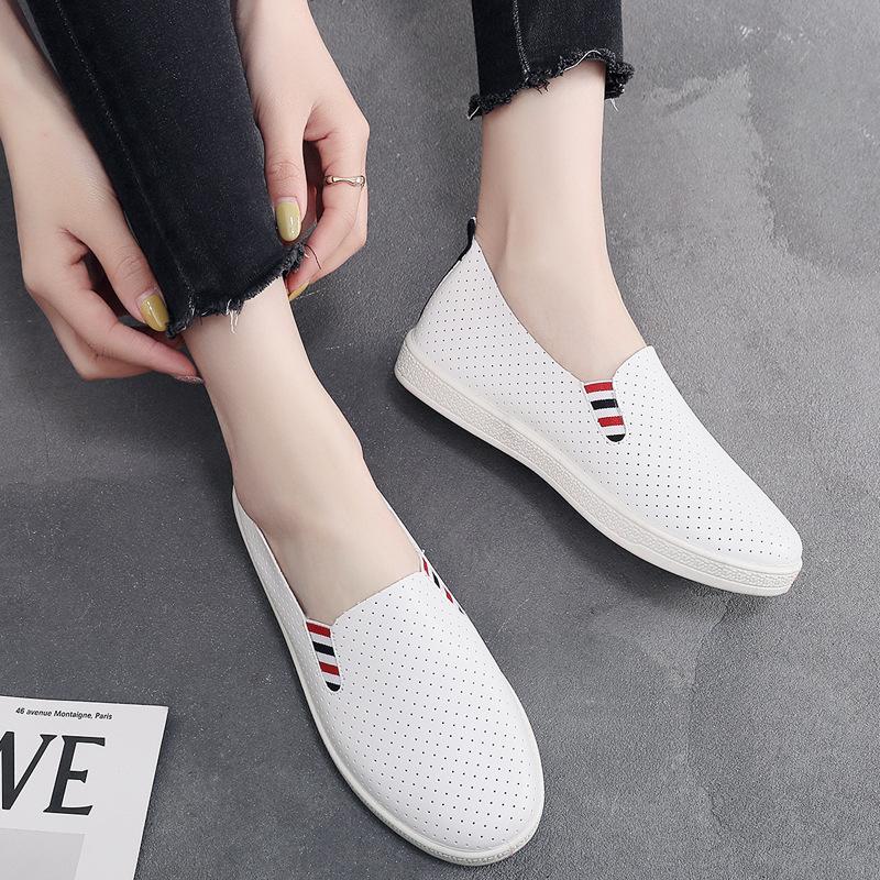 2025 autumn student shoes women's breathable mesh white shoes one pedal leather wear-resistant low-top lazy shoes