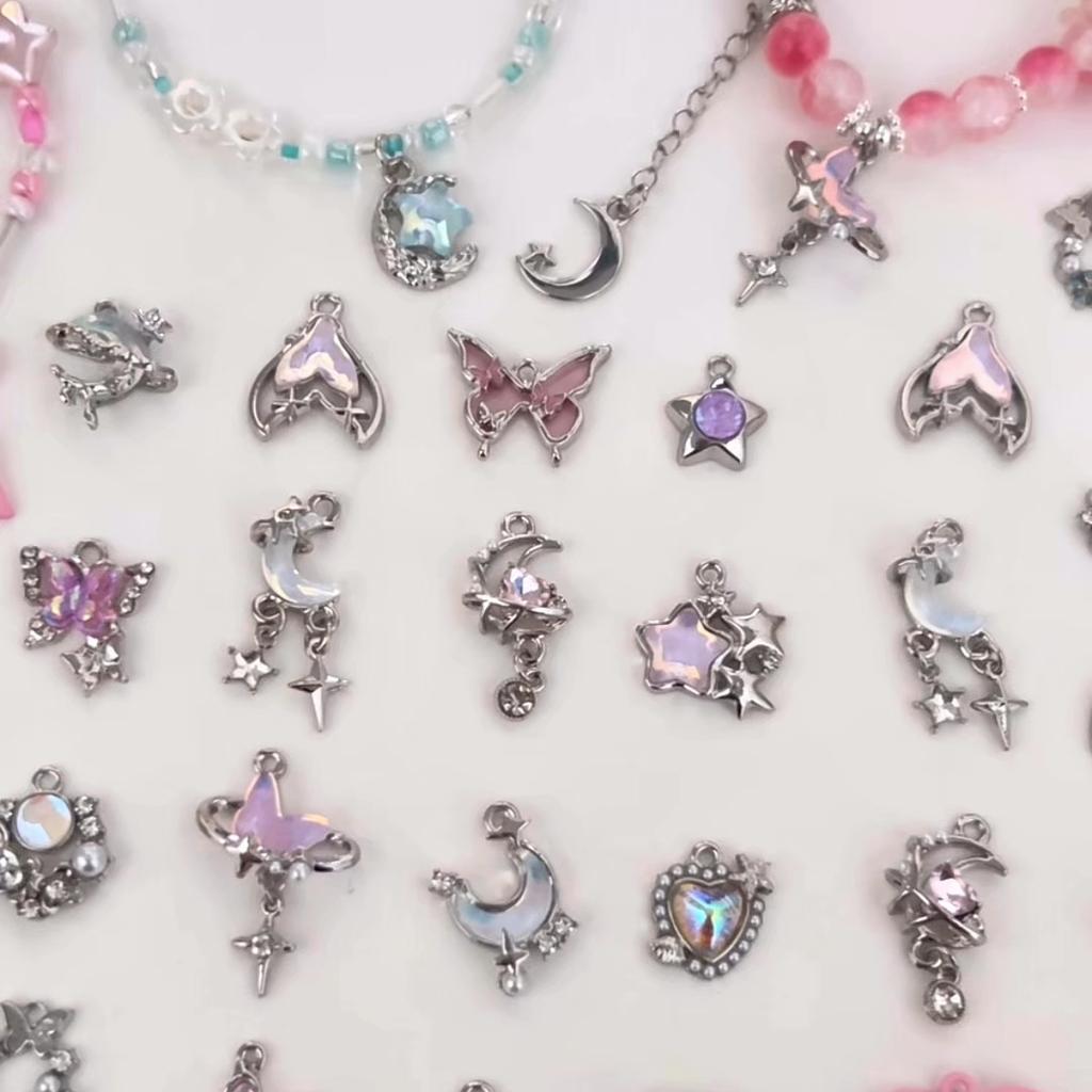 Slitinové přívěsky ve tvaru motýla, měsíce a srdce pro DIY náramek, náhrdelník, doplňky