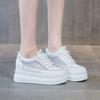 8cm Air Mesh Cow Genuine Leather Hidden Heels Women Platform Chunky Sneakers High Brand Shoes Vulcanize Summer Breathable