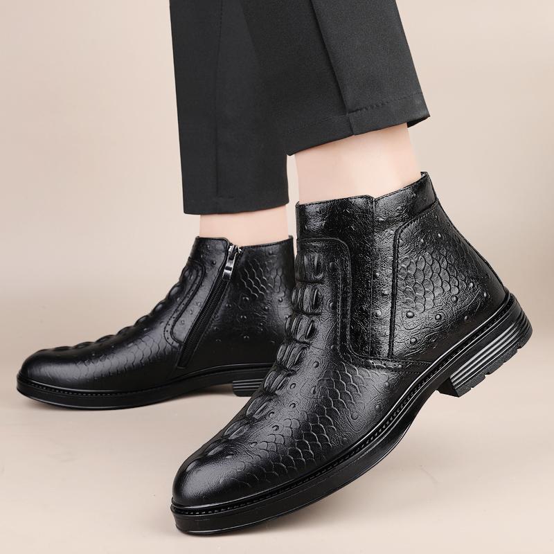 Comfortable Men's Genuine Leather Business Ankle Boots Casual Leather Shoes Fashion Chelsea Boots Leisure Walk High Top Shoes