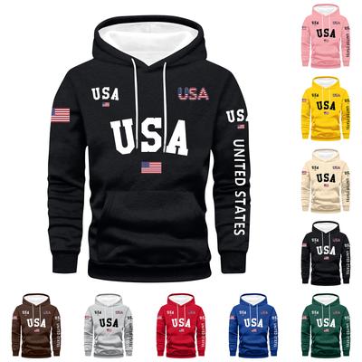 Módní ležérní pánská mikina na podzim a zimu, jednoduchý potisk americké vlajky, pohodlná mikina s kapucí a dlouhým rukávem