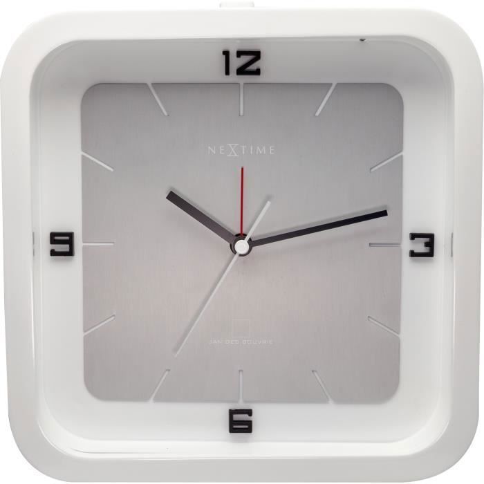 Stolní hodiny - NeXtime - Square Alarm - 20 x 20 x 6 cm - Dřevo - Bílá