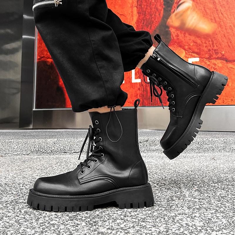 mens fashion stage nightclub wear motorcycle boots soft leather shoes black cowboy platform boot handsome high top botas hombre