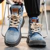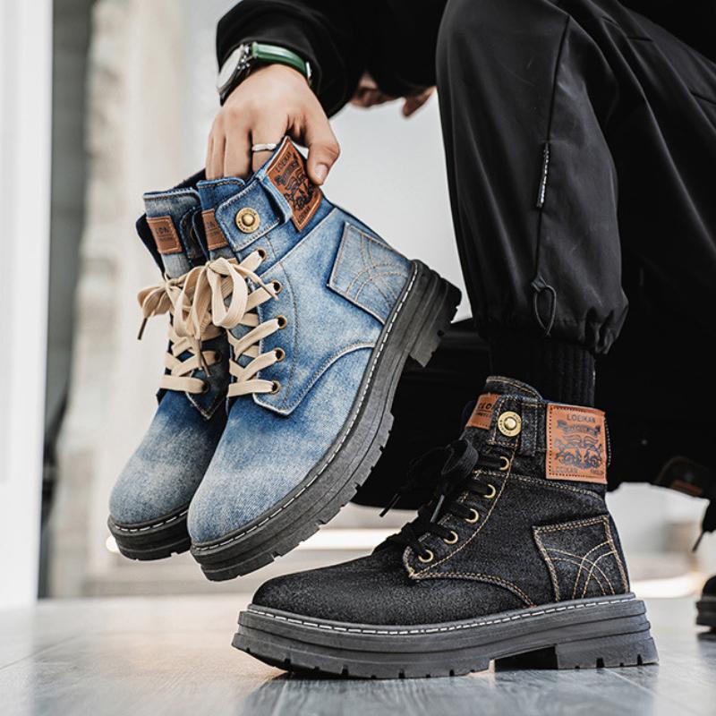 Retro Men's Platform Denim Boots High Quality Men Tooling Boots Fashion Trend Denim Versatile Casual Shoes High Top Working Shoe