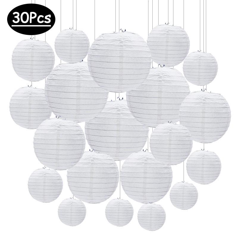 30pcs/lot 4''-12'' White Chinese Paper Lanterns Ball Hanging Round Lantern for Wedding Birthday Party Event Christmas Decoration
