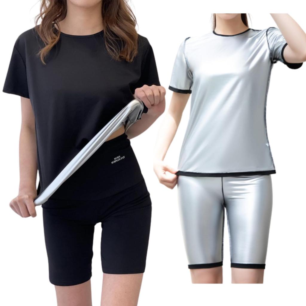 Gorcre Sauna Short Sleeves and Small Weight Workout Heavy Machine Washable Size Women's Suit, 2-Piece Set, Shorts, Size, Sweat-Reducing, Loss, Wear,