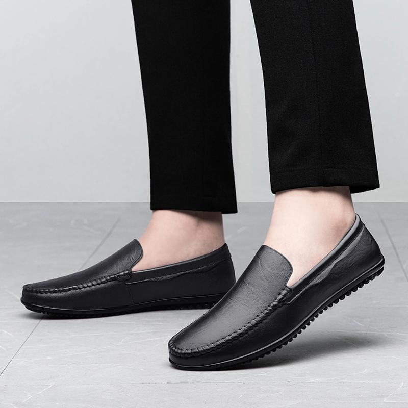 Men's Genuine Leather Loafers Slip-On Comfortable Flat Casual Breathable Soft Sole Shoes Non-Slip Lightweight Men Walking Shoes