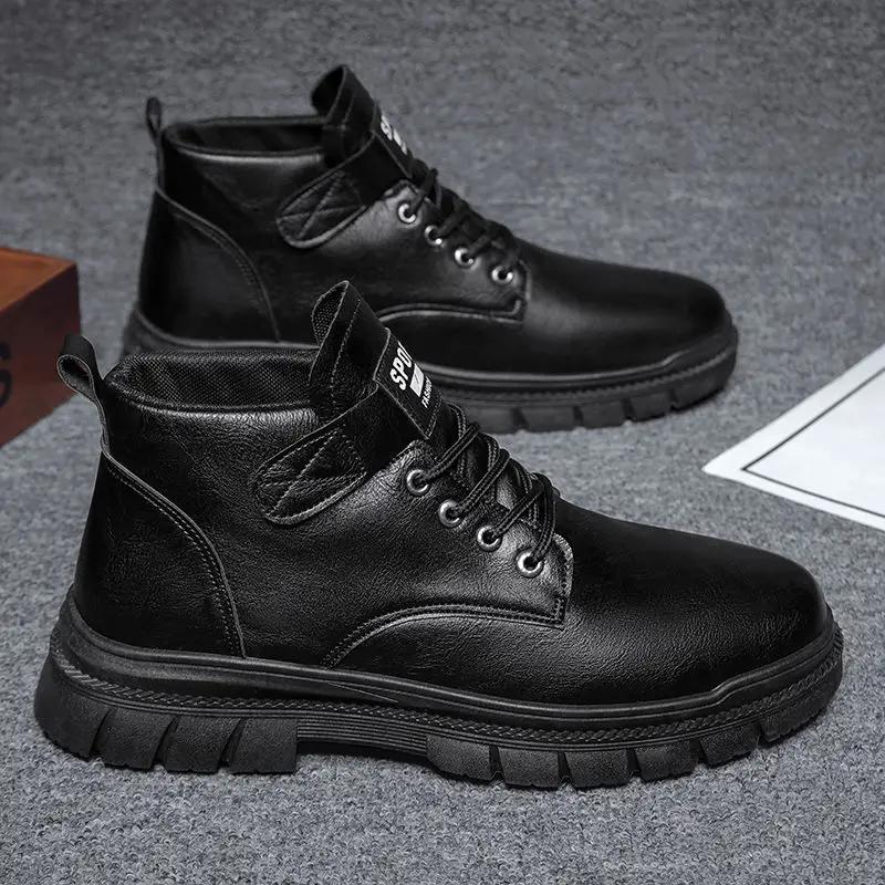 Solid Color Thick Sole Non Slip and Waterproof Man Casual Boots Platform Adults Free Delivery Shipping Pu Leather Shoes for Men