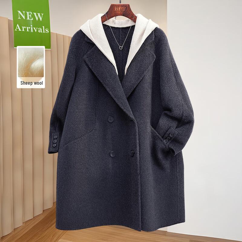 Women's Double-Faced Wool Blend Hooded Winter Coat