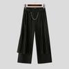 INCERUN Men Zip-up Waist Front Layers Solid Casual Long Pleated Pants Trousers