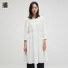 Broadcast Women's Round Neck Pleated Long Sleeve A-Line Mini Dress