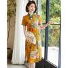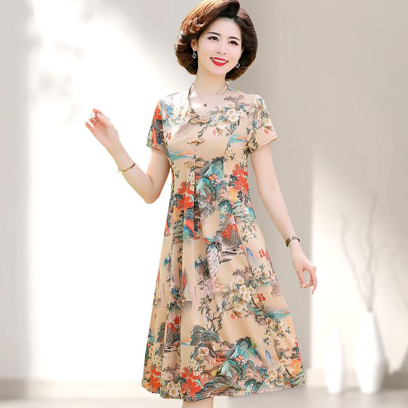 Paster Women's Chinese Style V-Neck Printed Summer Dress