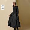 Inman French Style Autumn/Winter Corduroy Knit High-Neck A-Line Midi Dress