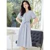 VICTORIA&VERA Summer V-Neck Drop-Shoulder Tie-Waist Midi Dress