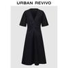 UR 2024 Autumn Women's Elegant V-Neck Twist-Knot Midi Dress