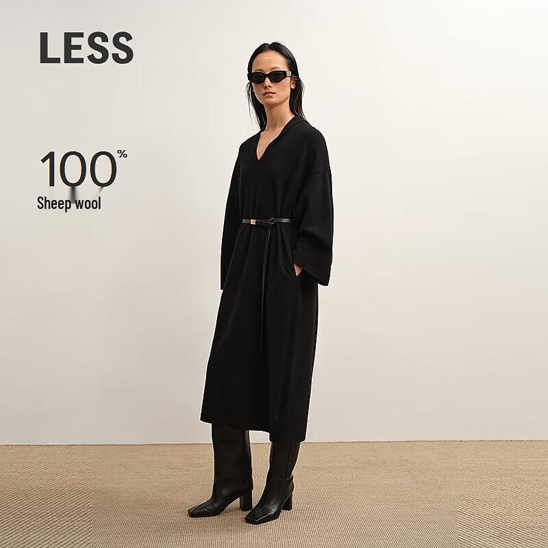 Women's V-Neck H-Line Merino Wool Midi Dress