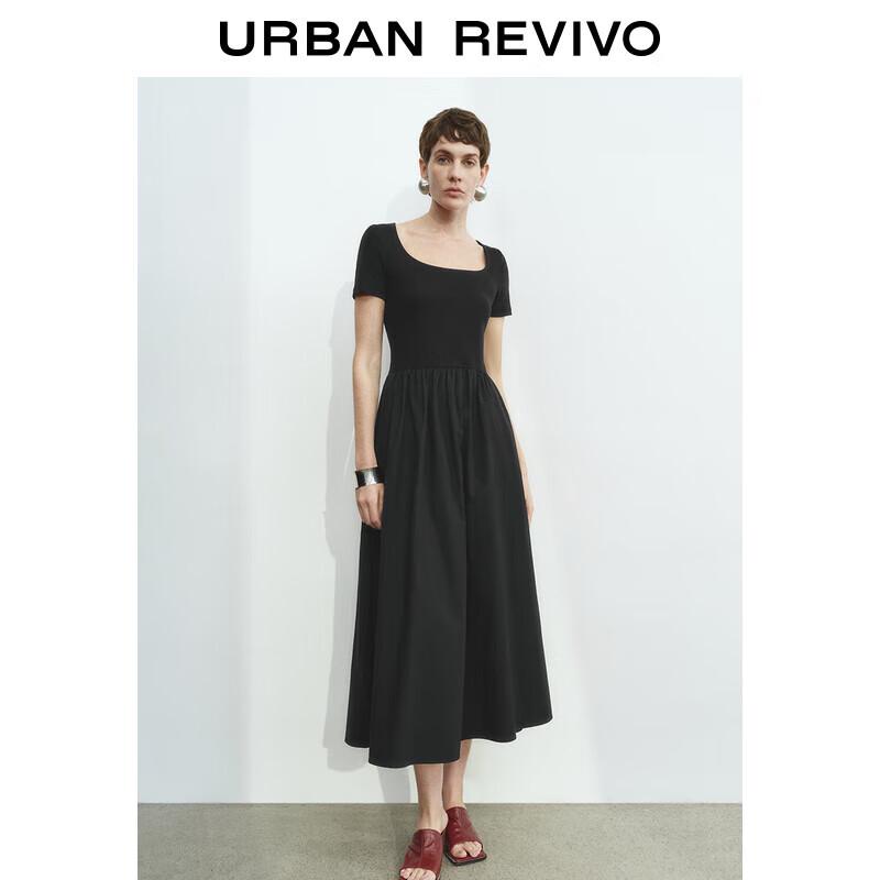 UR 2025 Spring Women's Spliced Slim Short Sleeve Dress