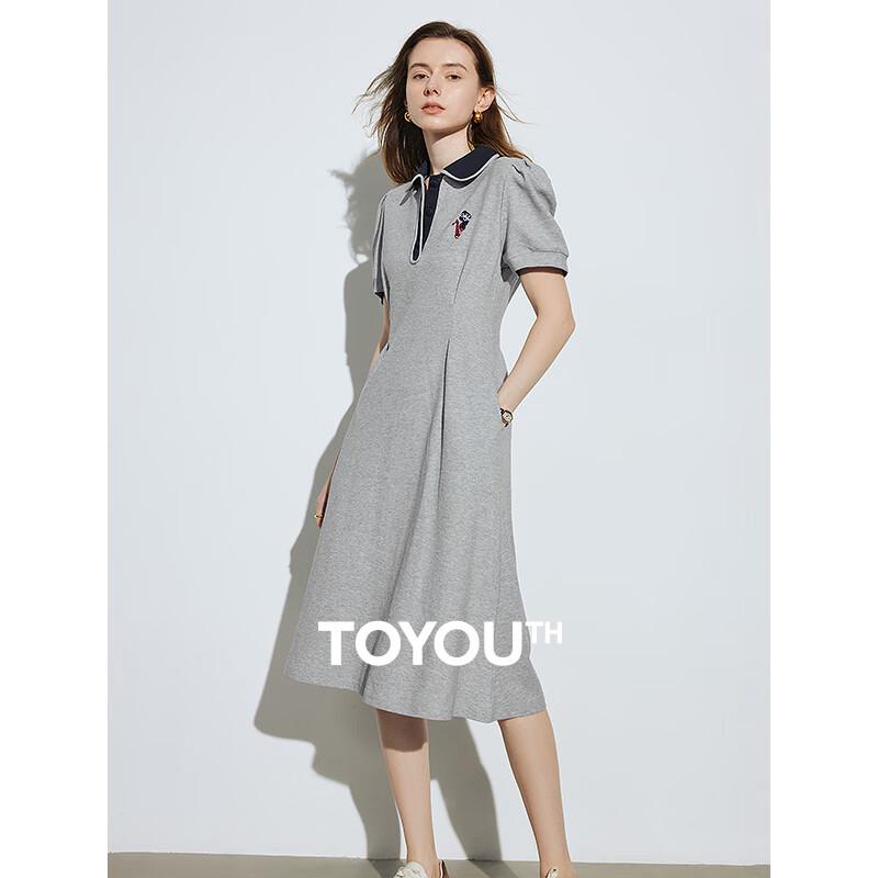 Chuyu Women's Polo Collar A-line T-shirt Midi Dress