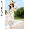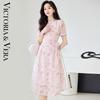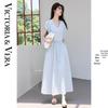 VICTORIA&VERA Women's Tie Pleated Backless Mid-Length Dress V9015L13