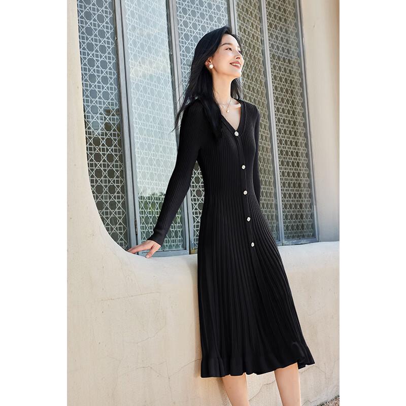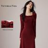 VICTORIA&VERA Women's Ribbed V-Neck Knit Dress