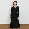 Dámské černé midi šaty s dlouhým rukávem a krajkovým lemem s výřezy