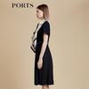 PORTS Women's Solid Short Sleeve V-Neck Belted Midi Dress