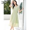 VICTORIA&VERA Women's Tencel V-Neck A-Line Midi Dress