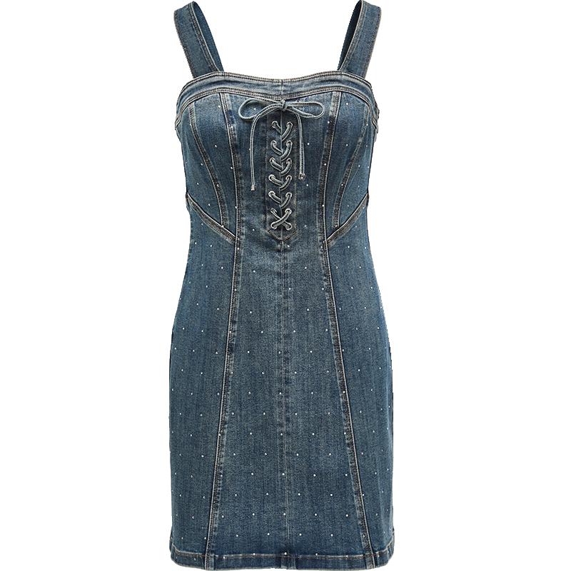ONLY Women's 2024 Autumn Rhinestone Strappy Denim Mini Dress