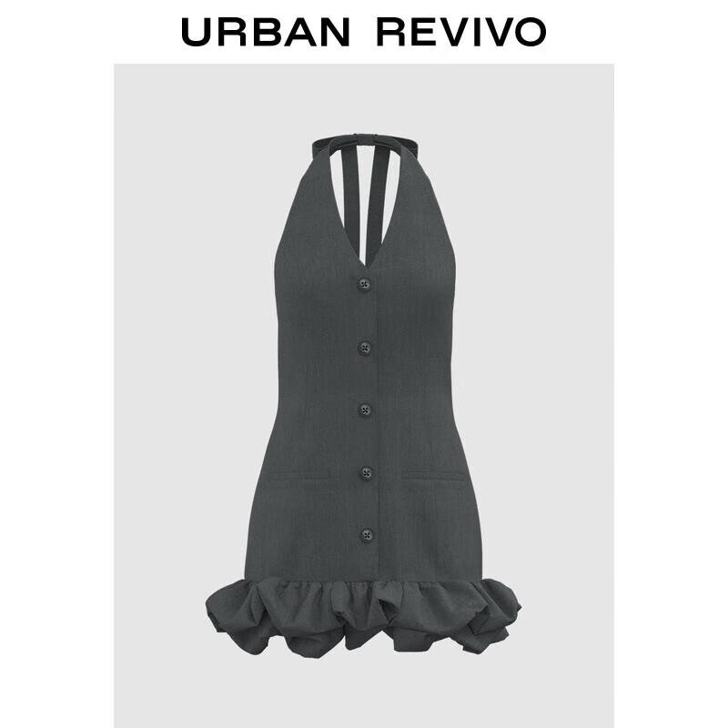UR 2025 Autumn Sleeveless Shirred V-Neck A-Line Dress
