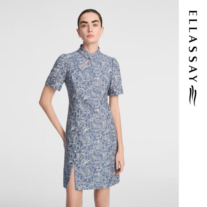 Embrace elegant traditional aesthetics with the ELLASSAY Early Autumn New Chinese Style Cheongsam Dress. This A-line silhouette features a stand collar, intricate knot buttons, and a delicate hollow-out design with a small slit for a modern touch. Crafted from a comfortable blend of cotton, polyester, viscose, and nylon, it offers moderate softness and regular thickness, perfect for transitional seasons. Designed with a high waist and short length, it's an ideal choice for daily wear, embodying sophisticated style for women aged 30-34.