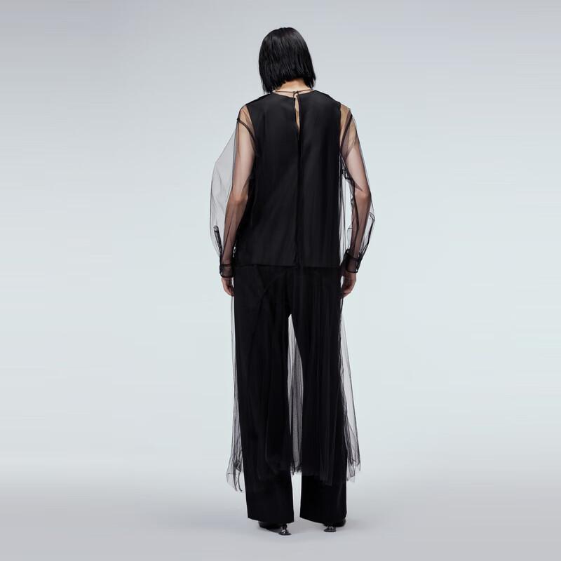 JNBY 2023 Fall Round Neck Mesh Long Sleeve Dress