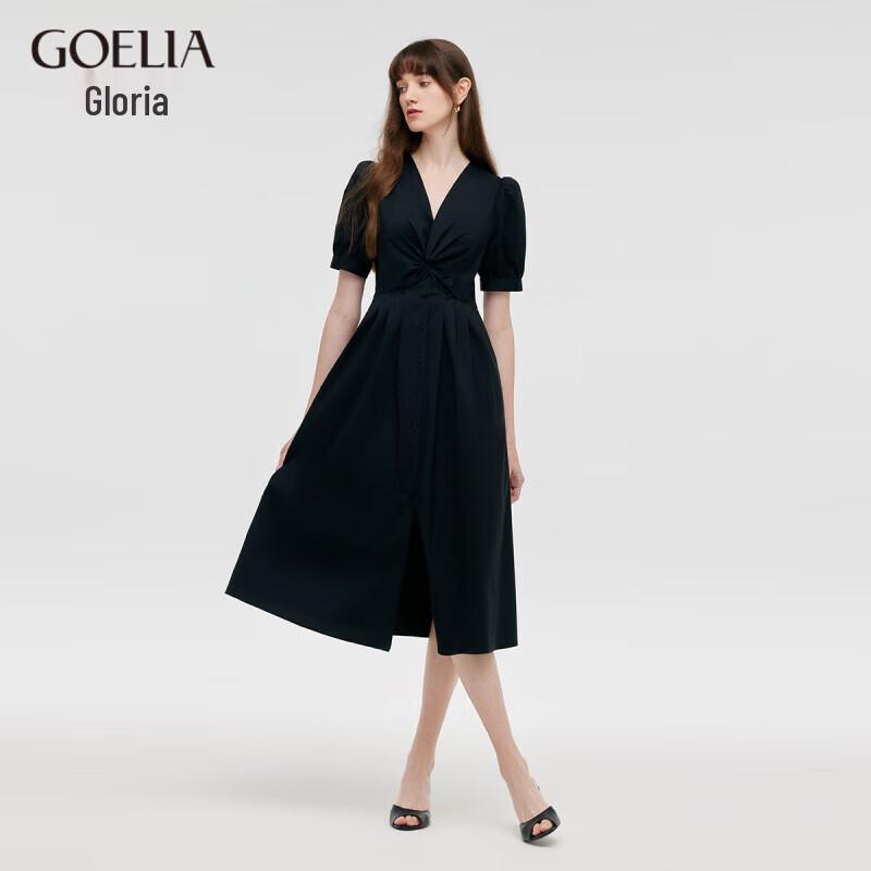 GOELIA Women's V-Neck Knot Cotton A-Line Midi Dress