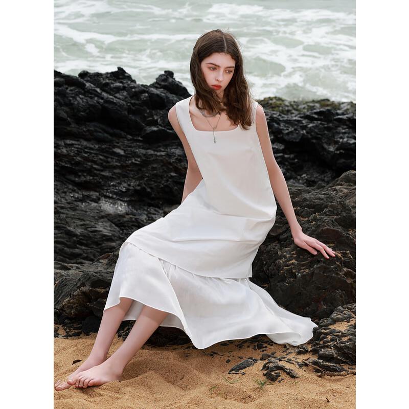 Sancai Square Neck Sleeveless Faux Two-Piece Long Vest Dress