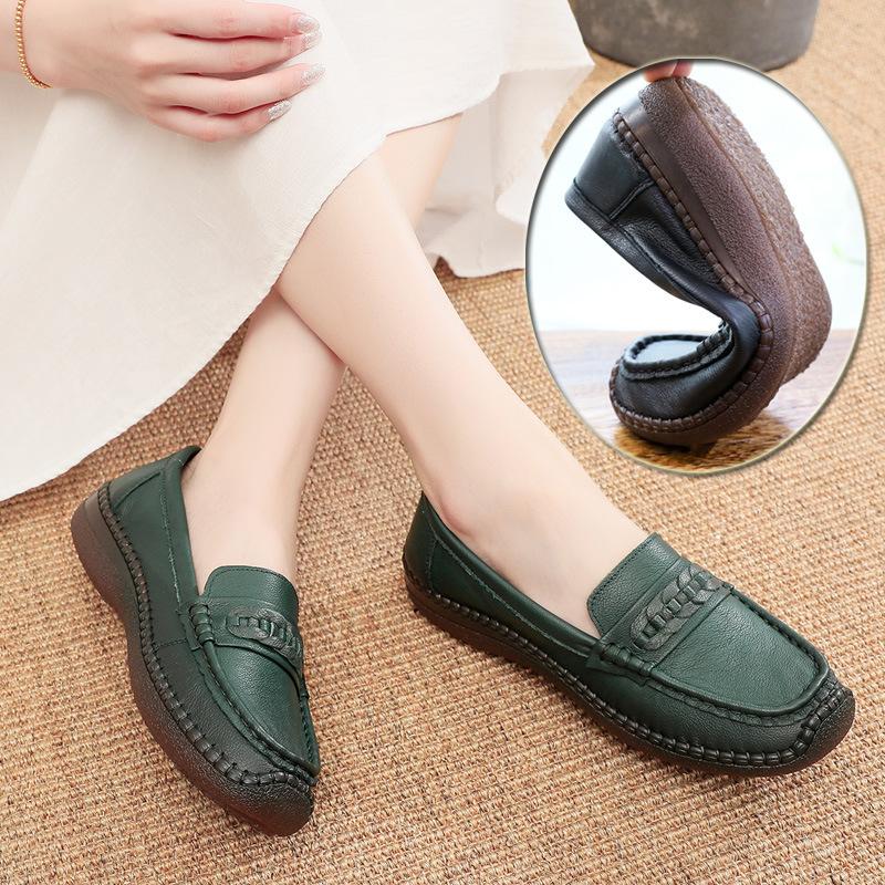 Handmade Women's Shoes Genuine Leather Mothers Comfortable Soft Sole Round Toe Single Shoes Luxury Cowhide Casual Woman Loafers