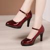 Lady Pumps Pointed Toe Office Work Shoes Buckle Strap Platform High Heels Women Shoes Four Season Patent Leather Shoes Size32-43