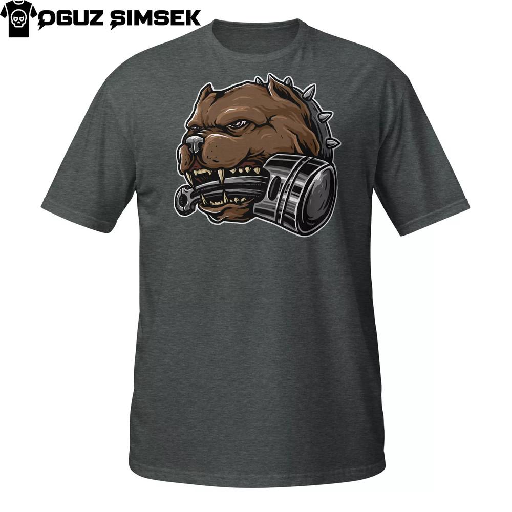 Tričko s krátkým rukávem s grafikou pitbula a válce motoru. Jedinečný design!