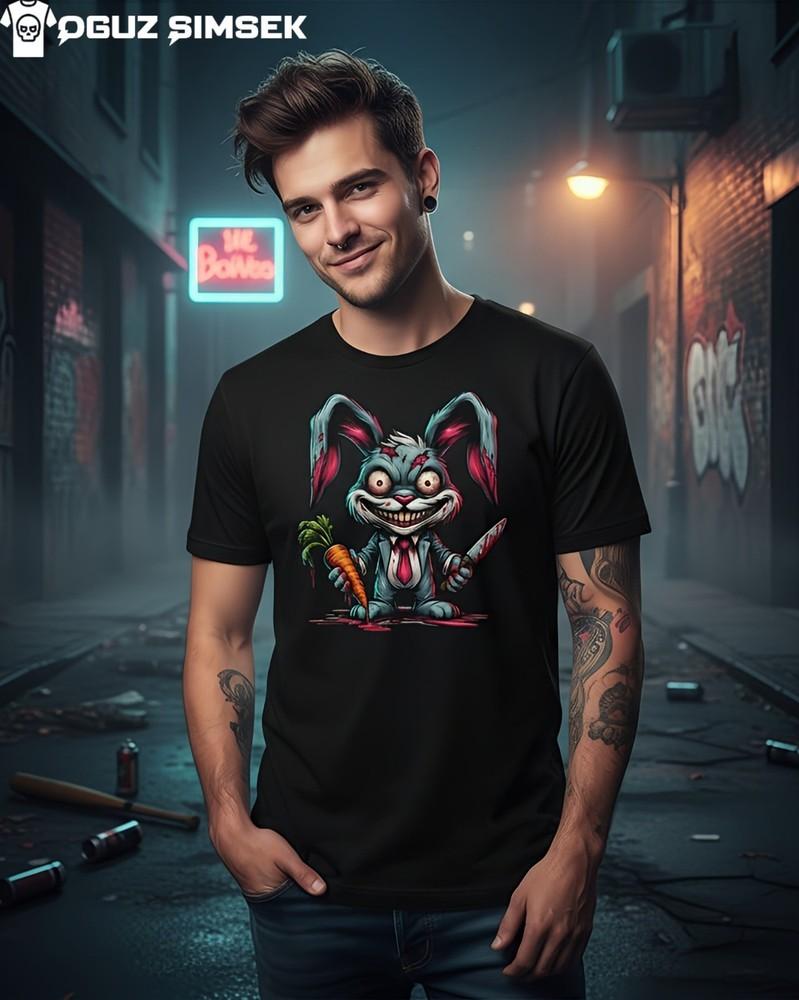 Zajíčkové tričko | s nožem a mrkví | Tričko s černým humorem