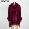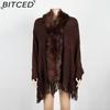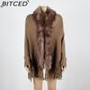 BITCED Fall/Winter Fringe Cape Shawl with Fur Collar Solid-Color Knit Sweater Jacket
