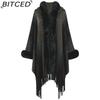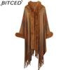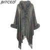 BITCED Hooded Cape Women's Fall/Winter Striped Knit Fringe Shawl