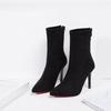 Women's shoes pointed middle boots women's high-heeled bare boots European and American winter 2025 new suede versatile and thin short elastic boots