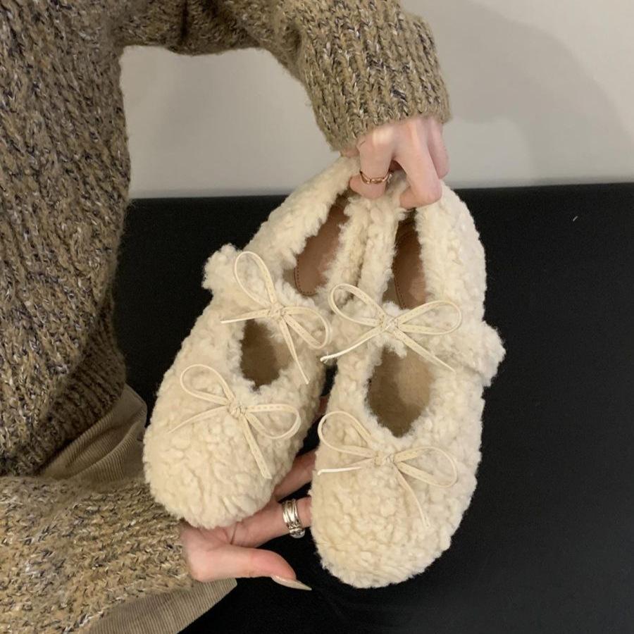 Small height increase plush shoes women wear foreign style in winter, fairy ballet warm Doudou cotton shoes