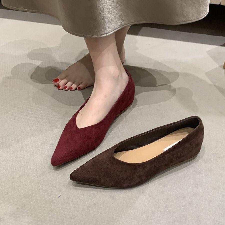 Shallow single shoes, women's height increase, French pointed head suede, thin one-pedal Doudou shoes, commuting is not tired, women with laden shoes