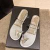 Sandály s motýlky dámské s plochou podrážkou 2025 léto nové vílí studentské špičaté kamínkové kulaté hlavy chladné pantofle dámské na ven