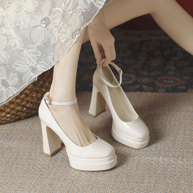 Small white high heels women thick heels not tired feet patent leather host car show model waterproof table super high heel single shoes
