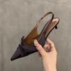 2024 Women's Summer New Simple Solid Color Fashion Pointed High Heels PU Leather Brand Designer Outdoor Banquet Women's Sandals