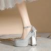 2025 French Silver Platform Non-slip Mary Jane High Heels Women's Chunky Wedding Shoes Bride Shoes Small Line with Single Shoes