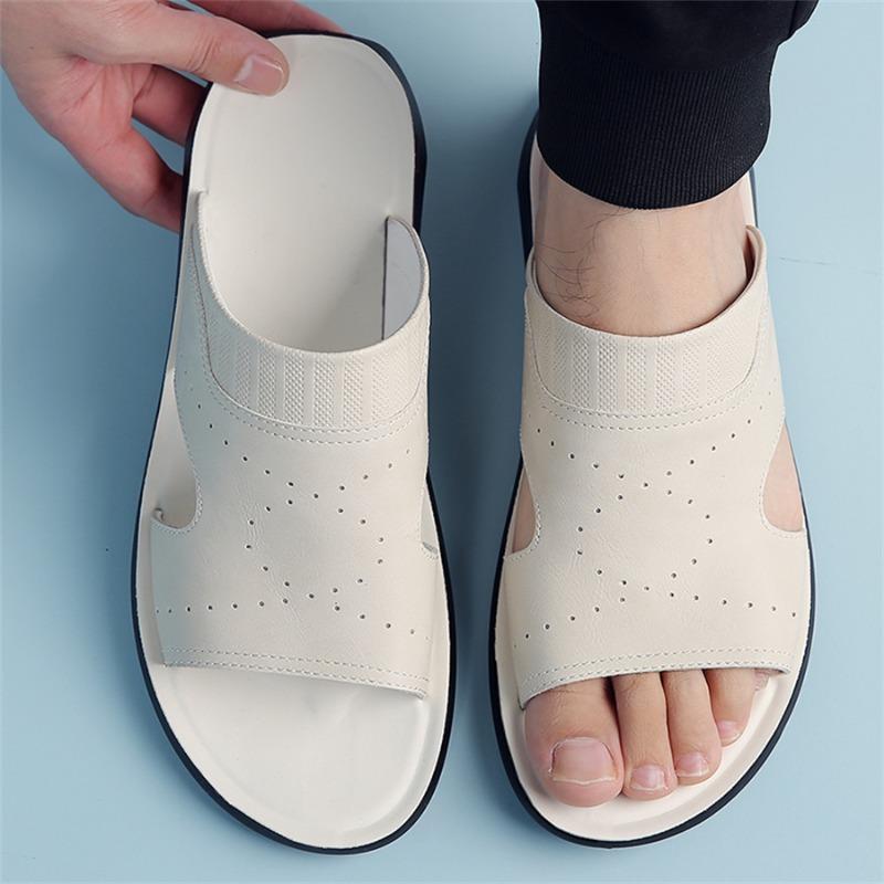 Slippers for Men Cowhide Leather Slipper Outdoor Leisure Beach Slippers Men's Flat Slippers Summer Holiday Roman Sandals