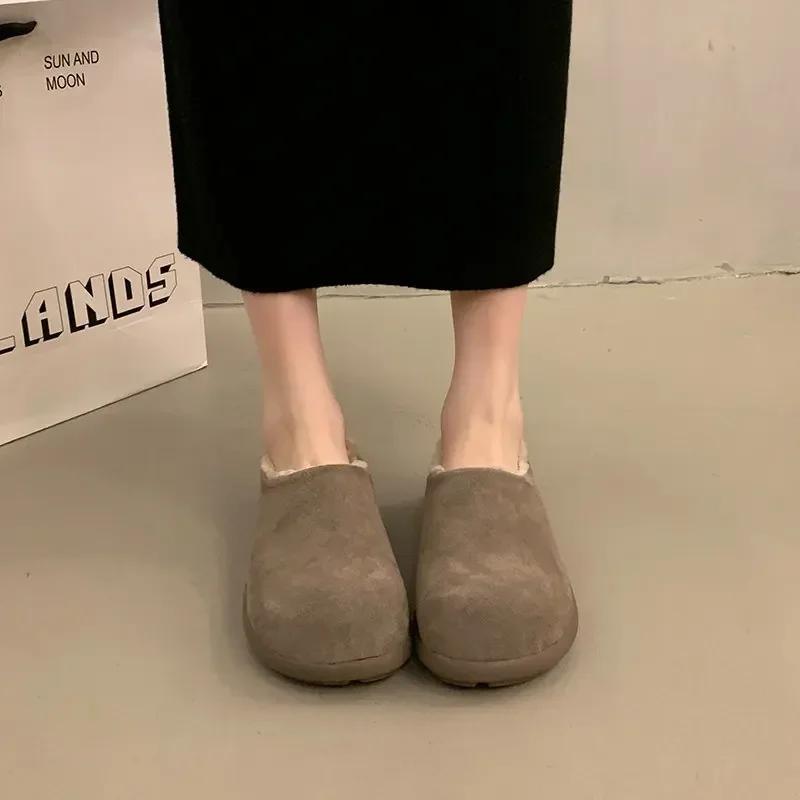 2025 New Flat-Heeled Fleece-Lined Full-Cover Birkies, Winter New One-Piece Warm Cotton Shoes for Women, Casual Fluffy Slippers