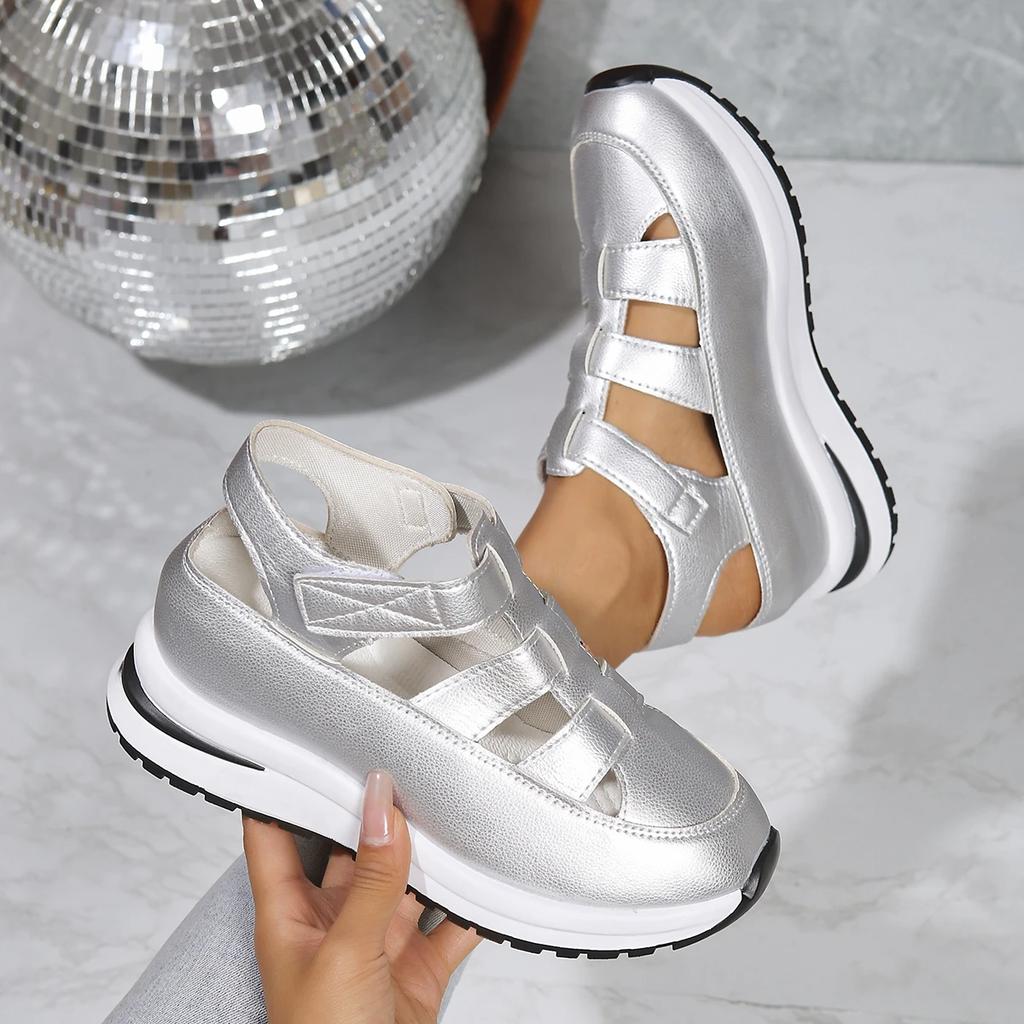 Letní dámské sandály 2025 Nové Vysoce kvalitní Sandály s přezkovým páskem Dámské S uzavřenou špičkou Kancelářské a Kariérní Jednobarevné Klínové boty pro ženy